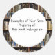 Cet autocollant a un arrière - plan qui montre des étagères complètes de livres, comme dans une bibliothèque et votre texte centré dans un cercle blanc. Une excellente façon de marquer votre propriété dans la salle de classe ou loin à l'université. Cela peut être utilisé dans les livres comme une bibliothèque, dans les dossiers, où que vous choisissiez!