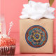 Modèle de mandala peint à la main et coloré - bleu, or, violet, orange, jaune, vert.