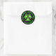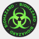 Étiquette verte et noire du symbole de danger biologique avec texte d'avertissement.