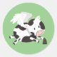 Un mignon autocollant de vache volante, portant une cloche de vache.