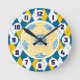 Horloge de conception typographique de ballon de football. Voici une conception typographique de ballon de football en bleu et jaune. Le design est fait à partir de terminologie de football et de mots d'argot.
