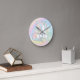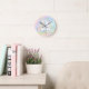 Unicorn wall clock with petty pastel unicorn on a beautiful pastel watercolor background. This unicorn clock can be customized with text.