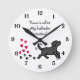 Cute Black Labrador trotting Horloge murale. Caricature de chien de Labrador Retriever, fantasque et drôle, créée par Naomi Ochiai du Japon. De beaux cadeaux pour les amoureux de les chiens qui aiment Labradors. Le chiot noir du Labrador souriant trotte avec des coeurs volants. Vous pouvez customiser du texte.