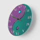 Chiffres romains blancs sur une horloge verte et pourpre de Yin-Yang,