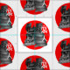 Roninkrieger. Ein Ronin ist ein Samurai ohne Meister, ein Krieger mit trauriger Vergangenheit. Dieses Design, das von einer japanischen Flagge unterstützt wird, zeigt einen Schädel eines Kriegers, der Samurai-Kopfbedeckung trägt.