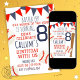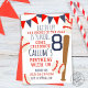 Un invitation de la fête d'anniversaire sur le thème du baseball avec des imprimés de baseball de style vintage dans des tons rouges, bleus et blancs. Célébrez vos petites salopes le grand jour avec cette invitation customisée à la fête de baseball !