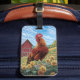 Rooster auf einer Sonnenblumenzucht Gepäckanhänger