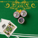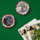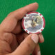Poker-Chips mit Fotos eines Hahnenhalters.
