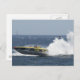 Großartiger Roster-Schwanz von Spray von einem Offshore-Motorbootsporter.