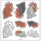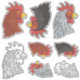 Rooster's Head Icon Sticker Set