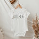Dieser Baby-One-Jumper verfügt über eine silberne glitzernde Schneeflocke und das Wort "eins" für eine Winter-Wunderland-Geburtstagsparty. Pair mit allem aus der Rory-Kollektion für eine zusammenhängende geschlechtsneutrale 1. Geburtstagsfeier.