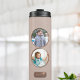 Ein hübscher, rosafarbener wärmer Tumbler mit einem Imitat Leder Look Textur Effekt. Runde Rose goldene Rahmen für Ihre zwei quadratischen Fotos und eine Rose goldene Metallplatte für Ihre Initialen. Alle Imitate und ein visueller Effekt, damit Sie sicher sein können, dass er nicht abfällt. Fotografie freundlich von Storytree Studios zur Verfügung gestellt. © Storytree Studios, Stanford, CA