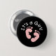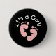 Rosa Babyabdrücke auf einem schwarzen Hintergrund und einem weißen Text, der "liest, es ist ein Mädchen!" auf Babymitteilungsknöpfen.