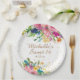 Eleganter rosa, blau und gelb Aquarell Blüten- und Goldschmiede Glitzer auf weißem Sweet 16 Geburtstagsfeier Platte personalisiert mit dem Namen des Ehrengast und ihrem Party Datum. Kontaktieren Sie mich für Hilfe bei Ihren Anpassungen oder für die Abstimmung oder Koordination von Zazzle Produkten für Ihre Veranstaltung.
