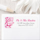 Moderne rosa Baum des Lebens Bat Mitzvah Rücksendeadressen-Aufkleber. Dieses einzigartige Design besticht durch einen Wasserfarbenwirbelbaum, Blume und Vögel.