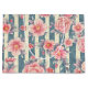Große Geschenktüte mit einem wunderschönen Muster mit hübschen rosa Blume, die auf einem gestreiften Muster aus blauen und cremefarbenen Streifen liegen.