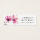 Elegante Mini-Visitenkarten mit rosa Aquarell-Blume und Ihrem Namen in einem eleganten Serif-Schriftart. Fügen Sie auf der Rückseite einen benutzerdefinierten QR-Code hinzu.