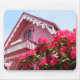 Das berühmte Pink House in Oak Bluffs auf dem Weinberg von Martha. Die Martha's Vineyard Campmeeting Association (MVCMA), eine beliebte Attraktion auf der Insel, ist Zuhause zu Hunderten von Viktorianischen Lebkuchen-Hütten. Oak Bluffs war einst als Hütte City bekannt. Martha's Vineyard liegt in Massachusetts, in der Nähe von Cape Cod.