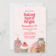 Feiern Sie die süßeste Jahreszeit mit dieser rosa "Baking Spirit Bright"-Weihnachtsplätzchen-Einladung, die charmante Wasserfarbillustrationen von Cupcakes, Plätzchendosen und Lebkuchen-Leckereien enthält.