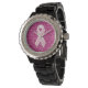 Schöne Kristall-Schwarz-Email-Uhr mit Pink Ribbon & Imitate Glitzer-Design für Brustkrebs-Bewusstsein