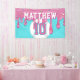 Schlag einen stilvollen Homerun mit diesem Baseball-Drip-Geburtstagsbanner, das mit einem kühnen blau-rosa-Design sportliche, moderne Flair in Ihre Feier bringt! Perfekt für Baseball-Fans jeden Alters, ist dieses auffallende Banner die perfekte Kulisse für Partyfotos, Dessert-Tische oder Eingangsdarstellungen.