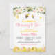 Diese Einladung beinhaltet niedliche Hummeln mit Grünpflanzen und Imitaten Goldfolien Konfetti und Honigwaben.