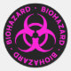 Biogefährdung - schwarzer Aufkleber mit fett gedruckter Schrift und Biogefährdung-Symbol in heißen Rosa.