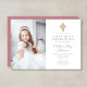 Personalisiert rosa Blumenreath Cross Girl Erste Kommunion Einladung.