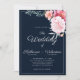 Ein elegantes klassisches marineblau-silbernes Formskript mit botanischen Minzgrün und rosa Aquarellfarben Blütenhochzeiten.