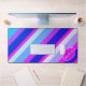 Rosa blaue retrogeometrische Linien Monogramm Schreibtischunterlage