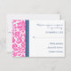 Die RSVP-Karten werden in elegantem und zeitgenössischem, hellen fuchsienfarbenem, dunkelmarineblau und Vintagem Damasken-Muster in Weiß, Klassik und Chic hochgeheizt. Geeignet für Ihre Hochzeitsdetails, erhältlich in vielen passenden Hochzeitsartikeln.