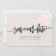Dieses Design bietet eine weiche rosa Aquarellfarbe Blume hinter dem Wort "Save the Date" in fett schwarz handgeschriebenen Skript vor einem Imitat Papier Hintergrund. Die Namen und die Einzelheiten der Hochzeit werden unten angezeigt und können individuell angepasst werden. Grafik ©Create the Cut