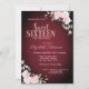 Moderne, schicke und glamouröse Sweet 16 mit rosa Blume auf bordeauxrotem Hintergrund.
