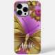 Rosa Blume Gold Schmetterlinge Personalisierter Na Case-Mate iPhone 14 Pro Max Hülle