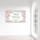 Niedliches und stilvolles "Happy Geburtstag" Banner für Ihre Frühjahrs- oder Sommergeburtsfeier. Schöne rot rosa Aquarellfarben Blume und sage grün Blätter auf einem weißen Hintergrund mit einem whimsical Skript-Schriftart, dass nur Pop! Personalisiert mit dem Namen des Ehrengast.