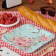Die Blume blühen auf hellblauem Hintergrund. Diese auffälligen Papierschüsseln werden sicher jede Feier aufheitern.