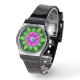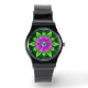 Rosa Blume mit grünen Blätter-23857 Armbanduhr