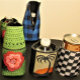 Rosa Blume mit Pearl Button Light Green Crochet Flaschenkühler