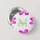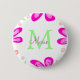 Rosa Blume Monogramm mit dem Buchstaben Grün Button