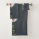 Rosa Blume Schwarze grüne Blätter auf dunkelgrau Badhandtuch Set