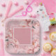 Rosa Blume-Papiertüte aus Blütenblättern. Die Kollektion besteht aus Wohngestaltung, Party und Freizeitkleidung.