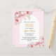 Ein weißer Bogen und ein heller Hintergrund. Rosa Blume und Button verzieren das Zimmer. Ein goldenes Kreuz. Personalisieren und fügen Sie einen Namen und Details. 1 Blatt = 1 Einladung mit Druckkante bis Kante.