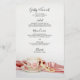Pearls Wedding Menu, das elegante Pink Floral Tee Cup, mit den Details des Essens, das Sie in Ihrem Tee-Party Brautparty Mittagessen, Post Hochzeit Brunch oder Ehe Empfang Abendessen, indem Sie den Salat oder ersten Gang, Vorspeise oder zweiten Gang und Dessert oder dritten Gang. Personalisieren Sie es mit den Namen der Braut und Bräutigam, Veranstaltungsort und Datum. Dieses elegante Hochzeitsmenü mit Tee und Tee ist mit einem Foto einer blühenden Teetasse und einer Untertasse mit weißer Perlenhalskette und rosa Satinverbindung ausgestattet.