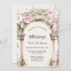 Ein großer Marmorbogen mit rosa Blumen. Personalisieren und fügen Sie einen Namen und Party-Details hinzu.