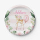Diese personalisierte, skurrile Geburtstagsfeierplatte eines Hirschmädchens mit einem rosa Blumenkranz, einem niedlichen Hirsch und einem Ballon.