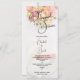 Die Probe-Dinner-Einladungen sind mit einem rosa, gelben und orangefarbenen Blume-Bouquet und einem eleganten Tischambiente gestaltet.