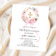 Ein eleganter, weißer Hintergrund, mit farbenfrohen rosa und weißen Blume in einem Kranz, einem rosa Bogen und einem goldenen Kreuz geschmückt. Personalisieren und fügen Sie einen Namen und Details. 1 Blatt = 1 Einladung mit Druckkante bis Kante.