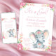 Rosa Blumenmädchen Elephant Babydusche Einladung
