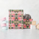 Das originelle rosa Blumenmuster von ZoeSPEAK auf diesem Wrapping Paper entstand aus Zoes Originalfoto von rosa Jatropha-Blume und Blüten im Garten. Das Foto in der Nähe zeigt die gelbe Mitte der Blume inmitten der rosa Blütenblätter. Die grünen Blätter der Blume auf beigem Hintergrund vervollständigen das Muster.