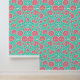 Rosa Blumenmuster mit grünen Blätter Tapete